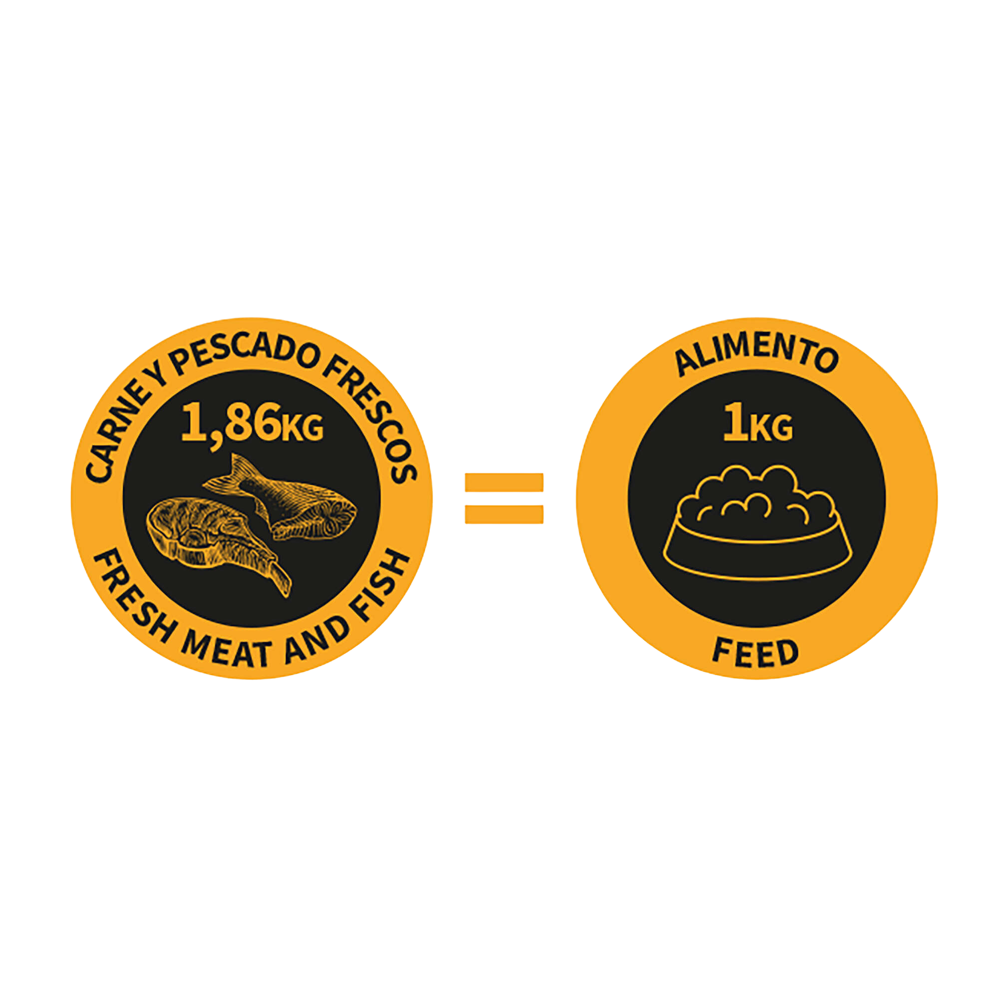 Ingredientes: 55% frango fresco, 20% peixe fresco ( sardinella aurita , cavala Scomber scombrus , carapau Trachurus spp. , sardinha Sardina pilchardus), amido hidrolisado, tocoferóis de óleos vegetais, extrato de alecrim, ovo desidratado, óleo essencial de orégano, tomilho, cravo, alecrim, canela do Ceilão.