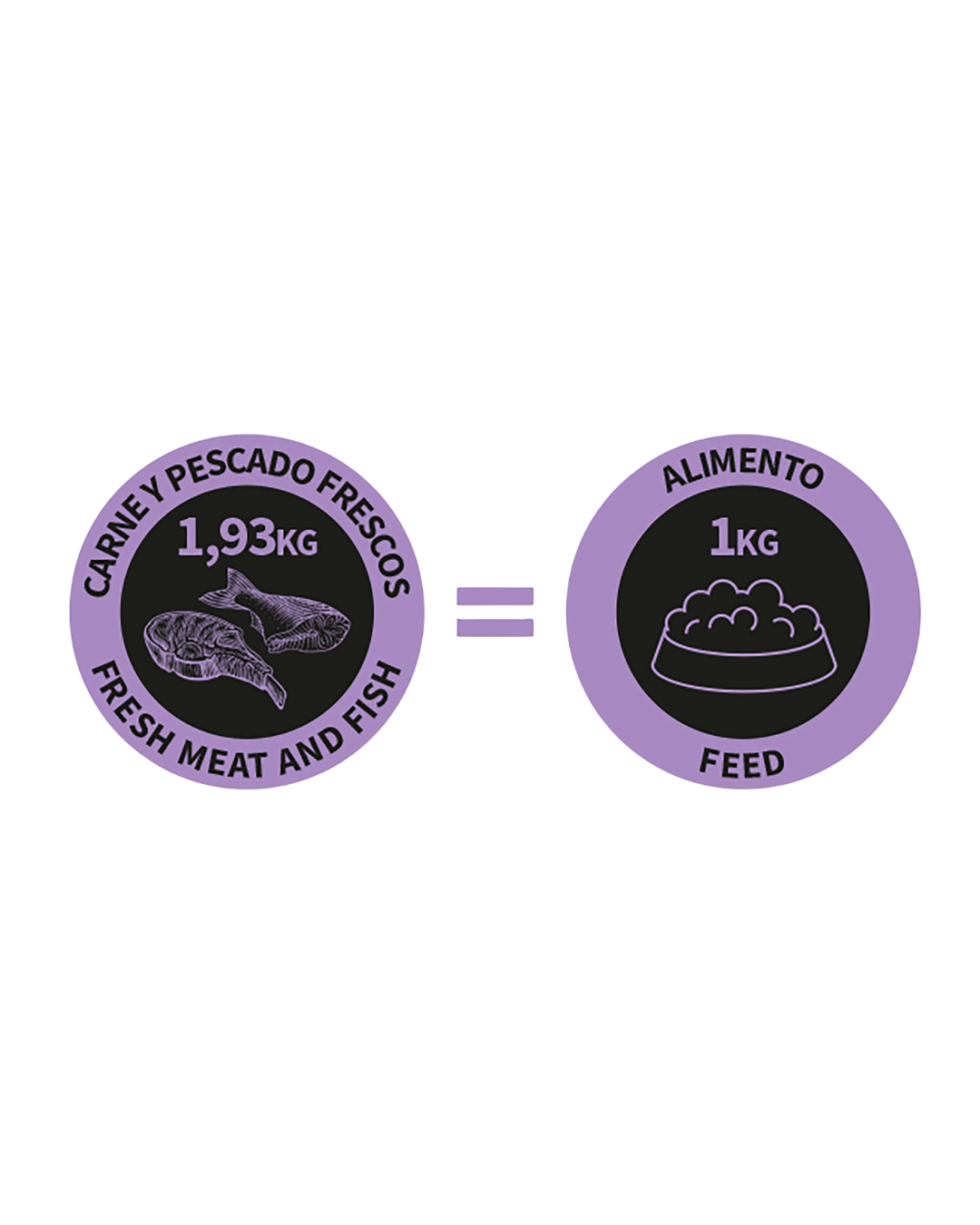 Esta ração combina três ingredientes de origem animal com um excelente perfil proteico e uma melhor proporção de gorduras saudáveis , como os ácidos graxos poli-insaturados (EPA e DHA). Estes são essenciais, especialmente durante a fase de desenvolvimento do filhote, influenciando diretamente o comportamento e as funções relacionadas ao crescimento .