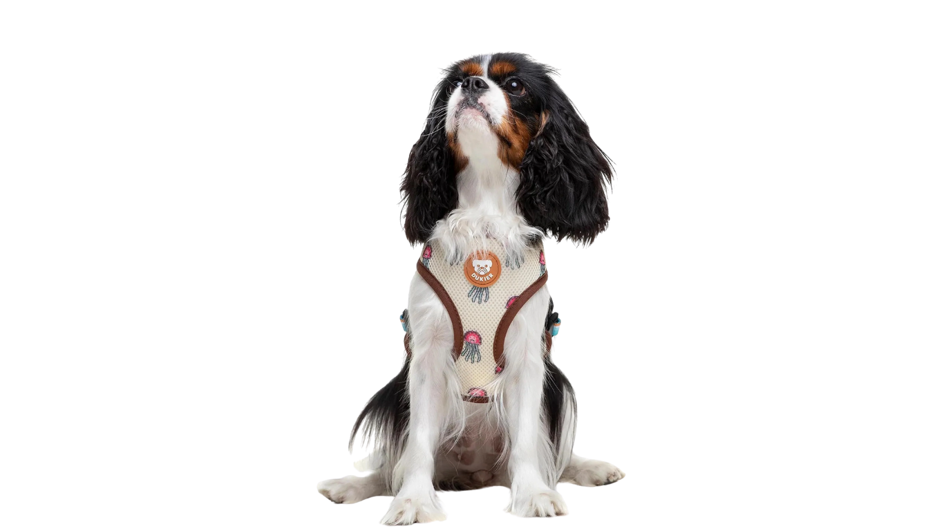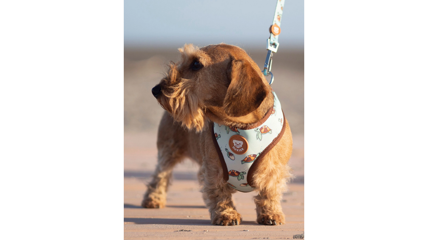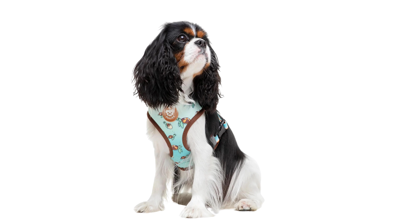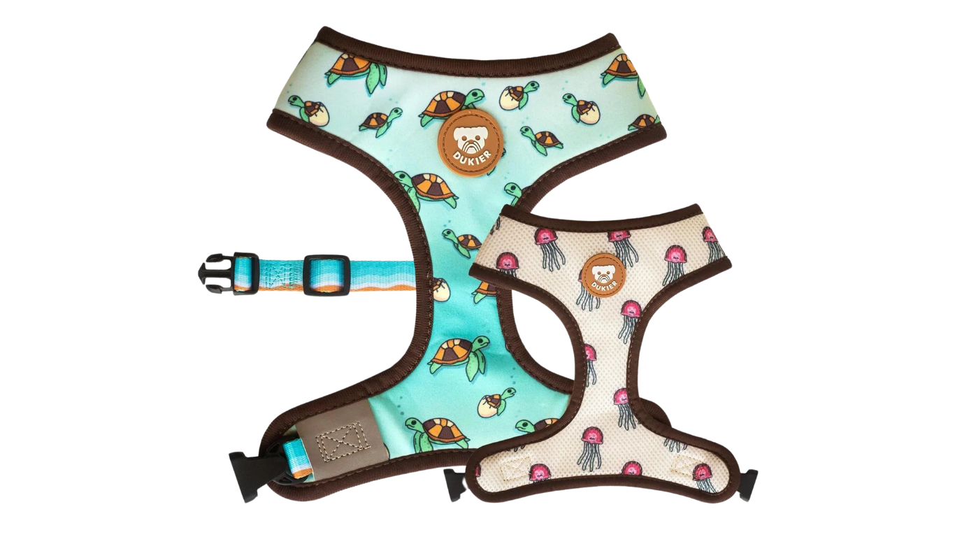 Este peitoral é superconfortável e ajustável ao peito do seu cão. Também é reversível, com um design fofo em cada lado, para que você nunca se canse dele. Tecido de neoprene de um lado e malha respirável do outro para manter seu cão confortável.