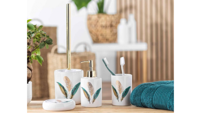 Dispensador de sabão Plumiss em cerâmica estampada metalizada